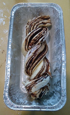 Chiudete l'intreccio e riponete il tutto nello stampo da plumcake da 26 cm ben imburrato.