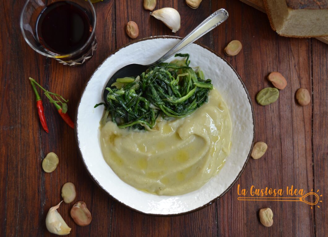 La crema di fave con cicorie è semplicemente deliziosa, genuina e facile da portare in tavola. Questa ricetta è preparata e amata moltissimo, soprattutto nel nostro meraviglioso Meridione, dalla Puglia alla Sicilia, passando per le mie Calabria e Campania. Io preparo la crema di fave con cicorie una volta a settimana, come piatto unico, a pranzo. E sono sazia fino a sera! Questa è la mia versione 😉