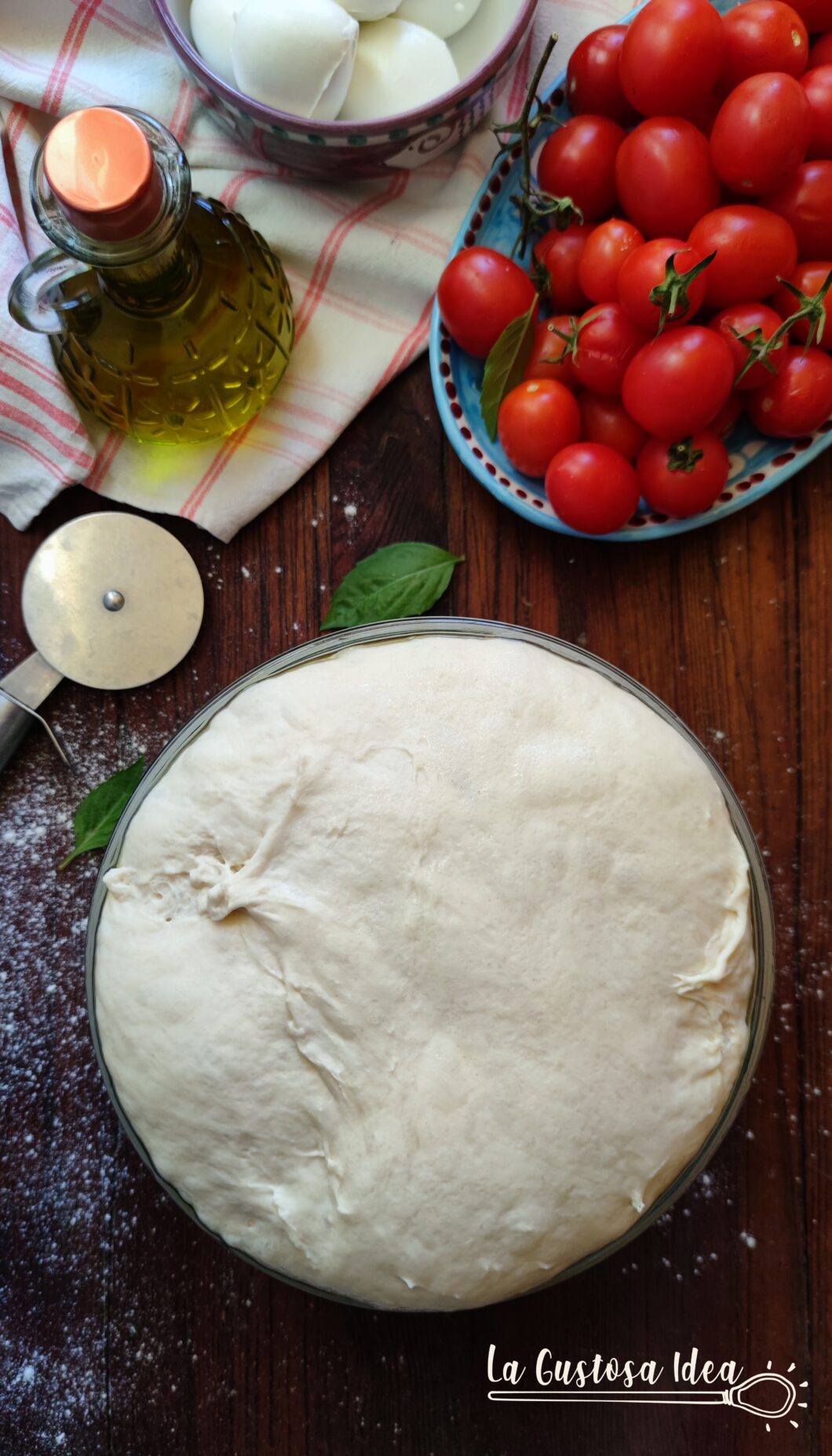 L’impasto per pizza fatta in casa è una ricetta base sempre molto apprezzata e utile per preparare una pizza soffice e gustosa con semplicità. Il procedimento può risultare lungo ma utilizzando pochi grammi di lievito e lasciando maturare l’impasto in frigo per 12 ore, avrete una pizza leggerissima, soffice e super digeribile. Oggi è il World Pizza Day, si celebra dunque, l’alimento più amato e conosciuto del mondo, sua maestà la Pizza. Portatrice sana di felicità, la Pizza nasce nella notte dei tempi, da quando l’uomo ha scoperto che dal grano macinato si ottiene la farina e che la farina mescolata all’ acqua, crea un impasto. Ma sicuramente, la svolta è avvenuta quando gli uomini hanno scoperto la cottura su pietra. Questa preparazione veniva preparata un po’ ovunque nel Mediterraneo ed è in Italia che trova la sua massima diffusione e si evolve completamente, proprio dalla mia amata Napoli. La Pizza più conosciuta al mondo infatti, è proprio quella napoletana. Ma in Italia la bontà e la meraviglia non mancano e infatti, anche la Pizza romana, differente per impasto e cottura, è una delizia unica. Ricordiamo poi la pizza siciliana, come lo sfincione, la pizza al trancio tipica di Milano o la pizza al tegamino tipica di Torino. Per non parlare poi, del mondo delle focacce e noi italiani siamo fortunati, praticamente ne abbiamo una per ogni regione! Tornando alla pizza, di condimenti ce ne sono in gran quantità e varietà ma, di sicuro, la Margherita è la regina delle pizze. Nasce a Napoli nel 1889 dalle mani di Raffaele Esposito e la sua intuizione rimarrà nell’eternità. La Pizza è sinonimo di gioia, pensate solo a come vi sentite quando siete in pizzeria e aspettate al tavolo, o pensate a come vi sentite quando aspettate il delivery. Non vedete l’ora, vero? Bene, e la felicità di prepararla in casa? Questa è la ricetta che ho imparato a fare da un po’ e ora la preparo sempre così. Sbizzarritevi con i condimenti e buon appetito!