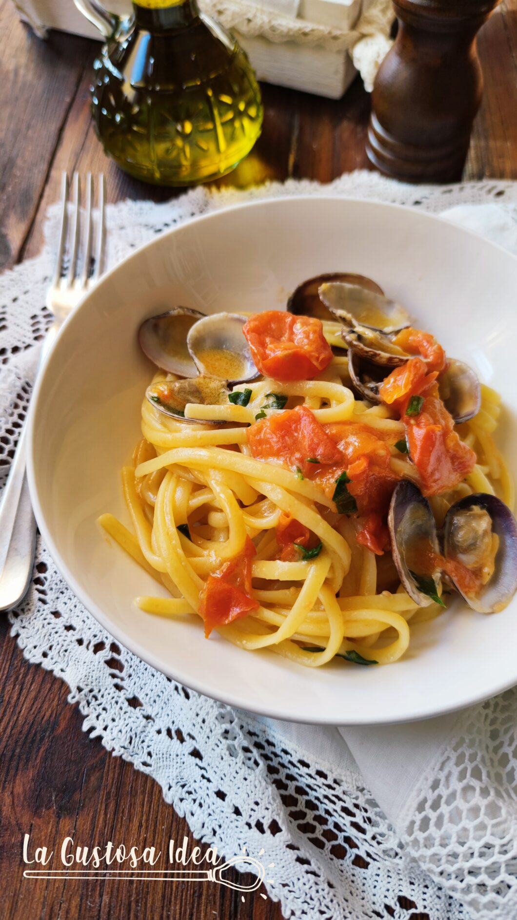 Le linguine vongole e pomodorini sono una vera prelibatezza. Questo piatto è amato e preparato in tutta Italia e fa subito festa. Il grigiore di questa giornata merita una ricetta saporita, magari da gustare con vista mare o pensando a temperature più felice, che non vedo l’ora ritornino. Di solito le vongole le preparo in bianco ma, ho trovato dei pomodori piccadilly davvero dolci e non ho resistito. Ho preparato delle Linguine Le Gemme del Vesuvio del Pastificio Grania Srl bene al dente e questo è il risultato! Spero che questa ricetta vi piaccia!