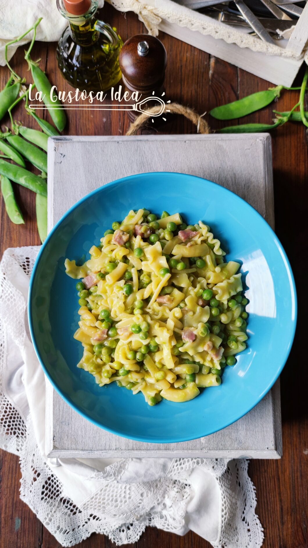 La pasta e piselli è un piatto semplice e ricco di sapori, si prepara ovunque in Italia e in ogni stagione. Io però la preferisco in questa stagione perché i piselli sono freschi, dolci e deliziosi. Presi ieri da fruttivendolo, oggi ne ho approfittato per preparare il pranzo. La mia versione è la più semplice, la più comune e la più pura in sapore. Molti aggiungono il pecorino o il parmigiano, ed è buonissima, ma quando i piselli sono freschi, io utilizzo solo un po’ di pancetta paesana presa dal macellaio, ed è tutto quello che occorre per creare il sapore perfetto. Oggi ho utilizzato la MUNNEZZAGLIA Le Gemme del Vesuvio del Pastificio Grania Srl, perfetta per le minestre con i legumi secchi o freschi come i piselli. Questa è la mia pasta e piselli e spero vi piaccia!
