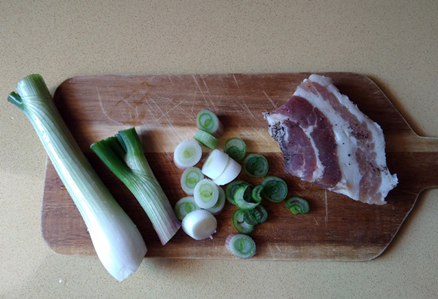 Lasciateli in uno scolapasta e nel frattempo, in un tegame capiente fate soffriggere il cipollotto con la pancetta e l'Extra Vergine.