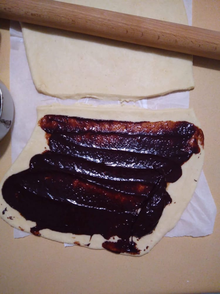 Trascorso il tempo necessario stendete l'impasto su carta forno dandogli la forma di rettangolo. Non deve essere perfetto, non temete.