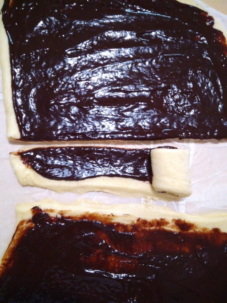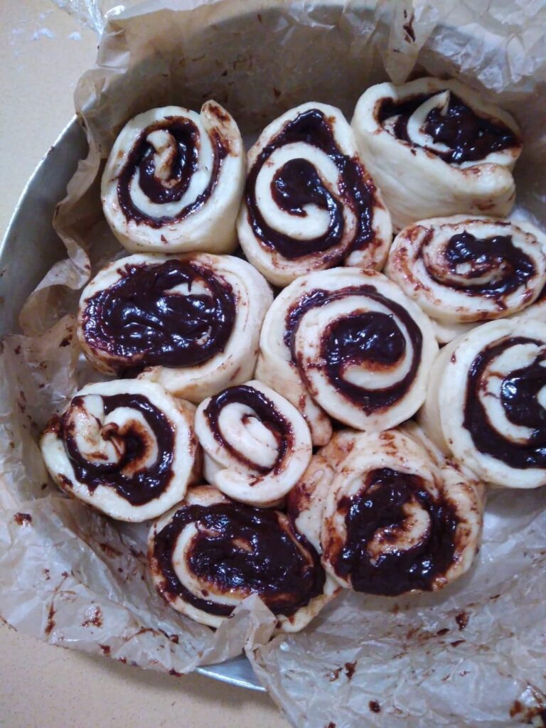 Spennellate la superficie degli swirl buns al cioccolato con un velo di burro fuso e fate cuocere per circa 20/25 minuti.