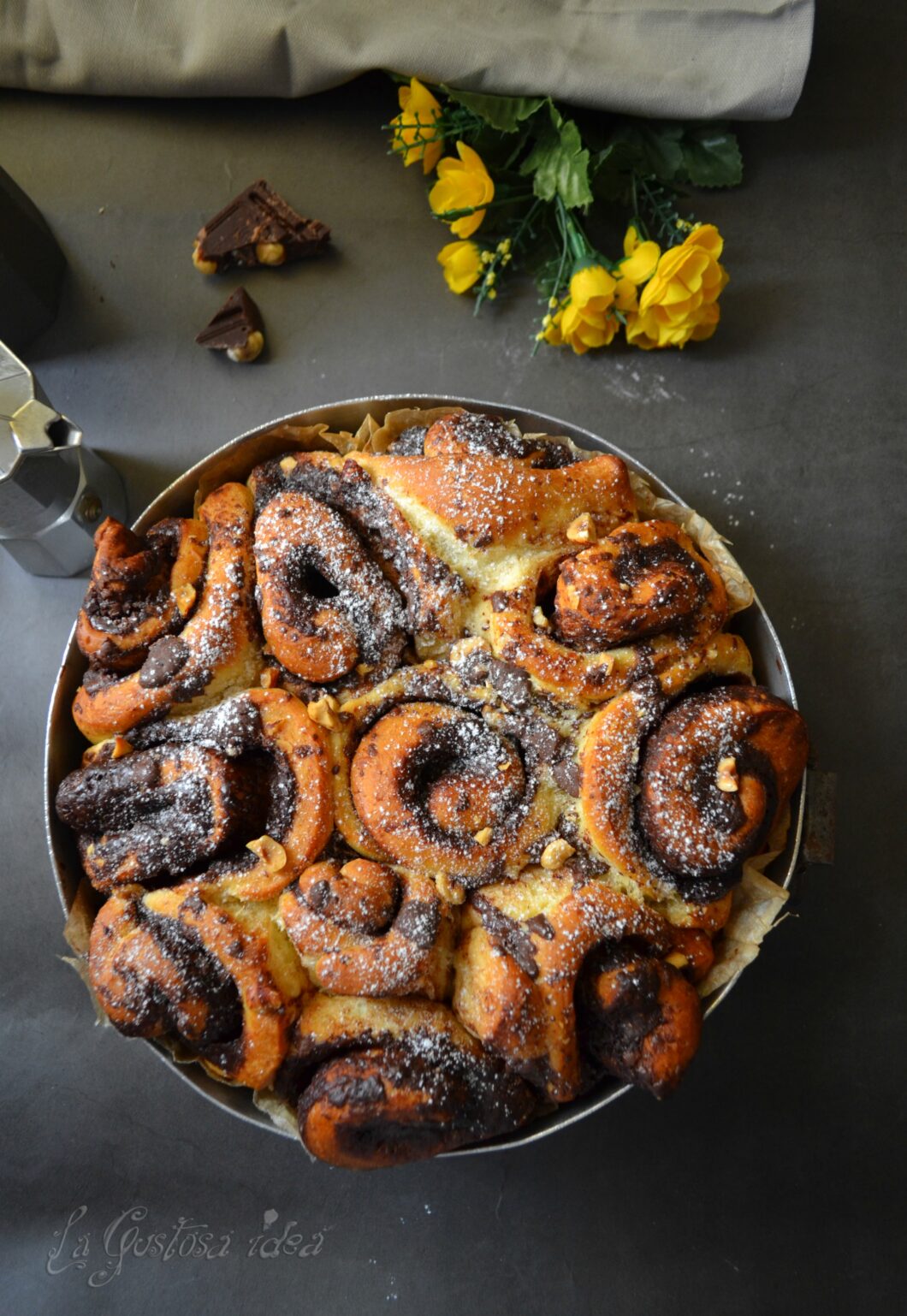 Gustate gli swirl buns al cioccolato tiepidi con una spolverata di zucchero a velo e buon appetito!